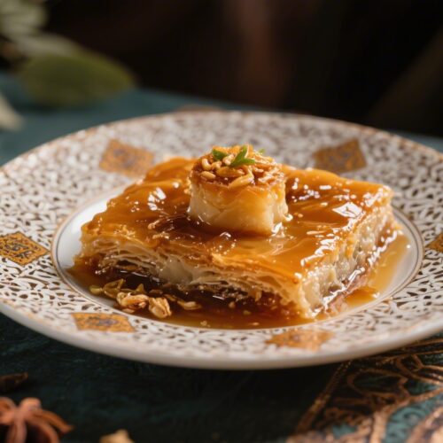 This rich, fragrant Middle Eastern dessert brings together crisp pastry, spiced nuts, and a floral-citrus syrup that feels special yet familiar. It’s a wonderful make-ahead treat for gatherings, holidays, or a cozy night in.
